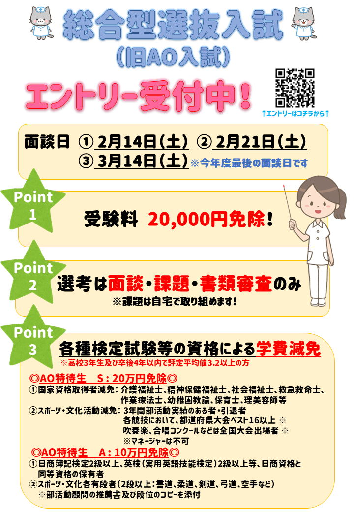 【看護師科】総合型選抜入試(旧AO入試)エントリー受付中!!